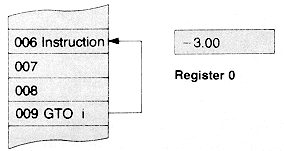 When the number in register 0 is a negative number these instructions perform a rapid reverse branch (GTO i) or subroutine (GSB i) the number of steps specified by the current negative number in register 0.
