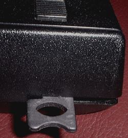 These calculators can be found with or without a security cable attachment bracket. The bracket is metal and pivots out from the back right corner.