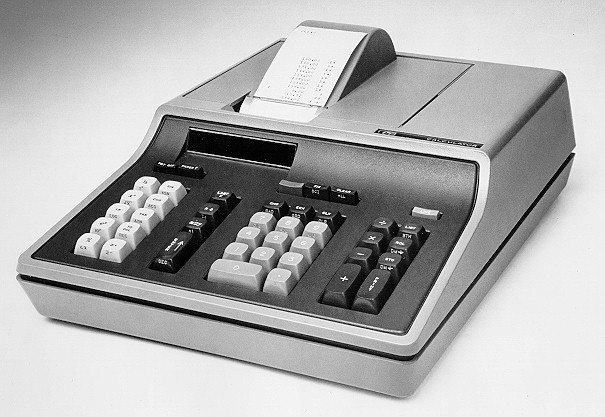 A single platform was designed for the HP 9805, HP-46 and HP-81. They were designed using clay modelling techniques like those used in the automotive industry. The special clay was firm at room temperature and softened when warmed a little. A form that was smaller than the final design was made and covered with the clay. The designer used a variety of clay modeling tools, some of which looked like miniature garden hoes to form the final shape and then painted the model. The pictures below show the original HP-46 clay model that was used in promotional shots. Can you tell the difference between the clay model and the final product? A picture of the final product molded in structural foam is provided for comparison. The final two pictures are HP photographs of the final HP-9805.