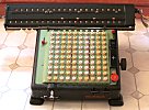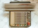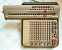 The Friden had two registers on the carriage and one on the main body in the multiply section. (This section is to the left in the picture and looked almost like an entire calculator in itself.) The Friden featured keys labeled: MULT, NEG MULT, ACCUM MULT, MULT CLEAR, REP, NON ENT, CTR CON, ADD, +, -, and ENTER DIVD plus two keys identically labeled with the division symbol, shift keys, four unlabeled sliding switches, 20 tiny knobs, 11 thumb wheels and more. In addition each of the numbers 0-9 appeared 10 times in the adding block, once in the multiply block and once on the carriage.