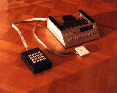 The need for I/O was still there, even more tempting than before. Realizing that HPIL was not for mere mortals, I solved the "output" part of I/O connecting the beeper leads to the outside (using the goldballs holes). Using TONE commands, different number of pulses may be sent to a microprocessor or discrete CMOS logic circuitry to communicate the status of the calculator, or to trigger an external event. Synthetic programming helped giving us much more TONEs to choose. To try to give my 41 some means of "input", Ive tried reducing the batteries voltage (by means of a series diode), and so to flip Flag 49 (Low battery). To communicate via a single flag (almost a Turing Machine proposition) would have been hard, but possible in theory. My "output" experiments were successful, but the "input" idea was not. I tried to peek on the expansion ports with an oscilloscope, specifically on the Flag Input pin. However, I never found a good way to input anything to the HP 41 (short of HP IL, or connecting switches in parallel with the keyboard). Serial buses were not for mere mortals, either.