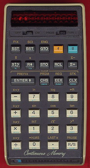 An improved version of the HP-25 featuring continuous memory. Programs and data were retained when the calculator was turned off, because the new low power CMOS memory was powered even in the "off" state. It was even possible to change the battery pack and retain the memory because of a capacitor inside. Users expect continuous memory today but it was an impressive upgrade at the time. This was the first example of HP upgrading rather than replacing a calculator.