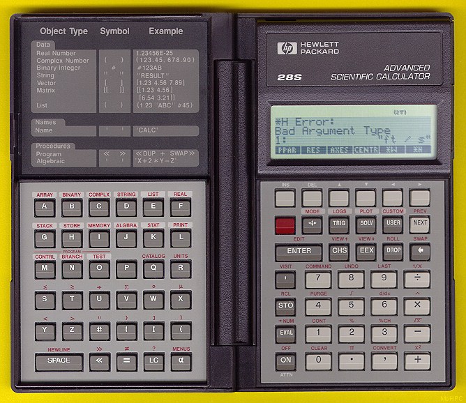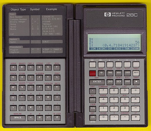 With the HP-28C, Hewlett-Packard revamped the scientific calculator. This model did symbolic math, used named variables, understood many data types and was programmed in User RPL - a subset of the System RPL language that HP used to program the internal functions of this calculator and the HP-18C. It was extremely powerful with a wealth of functions and many features inherited from the HP-18C including infrared printing, labeled soft keys, menus and the dedicated alphanumeric keyboard.