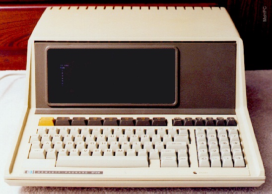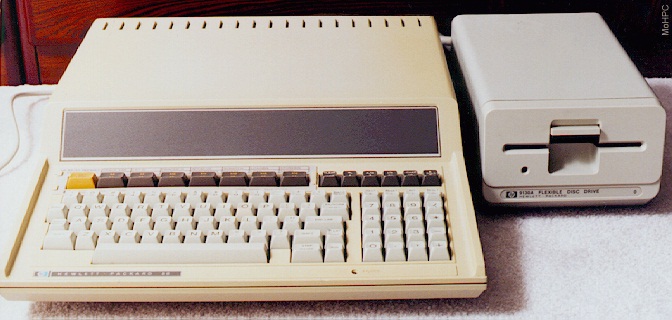 This low-slung model omitted the CRT display, tape drive and thermal printer of the HP-85. An external monitor could be driven via it's composite output and there was a provision for adding up to two external disk drives and a printer. (These devices were not HP-IB but HP-IB support could be added.) It was available in versions with 64K or 128K of RAM.