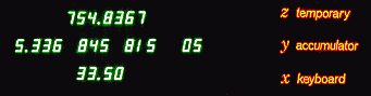 When people first encounter HP's RPN calculators, they often wonder about the stack labels X, Y, Z, and T. The HP 9100 had a three level stack with registers X, Y, and Z. X was called the keyboard register since numbers were keyed into it. Y was called the accumulator since the results of arithmetic on numbers in X and Y ended up in this register. (The entire stack was displayed.) Finally Z was called the temporary register. When HP later used 4 level stacks, the temporary name stuck and the new level became T.