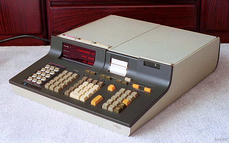 Running on AC power only and having the space for a wide bus has its advantages. On a simple benchmark RPN program that required a few seconds to execute, the 1972 HP 9810A was about four times as fast as a 1990 HP 48SX. It was vastly quicker than the battery powered handhelds of the '70s.