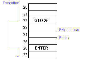 Entering an instruction causes the new instruction to be placed after the instruction displayed and overwriting the following instruction. To replace a single instruction, display the instruction before the error and key in the correct instruction which will replace the error. If you find that you need to add instructions to a program, you can either rewrite it from the point of the error on down, or you can insert a GTO nn at the point where the new instructions would be needed, perform the new steps elsewhere and use a GTO to go back to the step after the first GTO. Remember to include the instruction that was overwritten by the first GTO in your new block of code. For example: