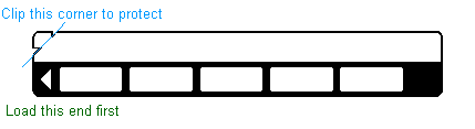 Note that as on the HP-67, it's possible to insert the card in the other direction (still label side up) to record a backup or a different program on a second track. There is no easy way to label the second program and you must be vary careful if you wish to protect it by clipping it's corner since you have no guide to follow. HP also warned that the motor roller is over the second track so after heavy use, the 2nd track may not read properly.