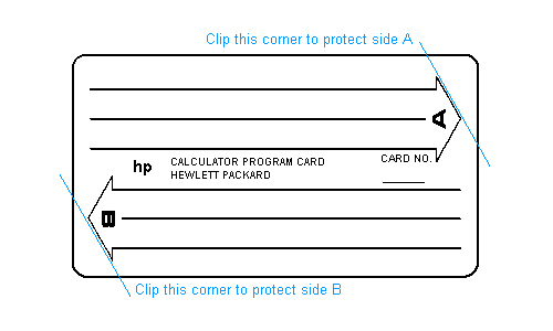 You may cut off the corner of a magnetic card to prevent it from being overwritten. Don't clip more than shown below or you could loose data. Cards can be marked with a permanent felt tip pen or lightly with a soft pencil.