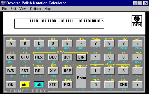 WRPN is a public domain calculator for Microsoft Windows written by Emmet P. Gray that is modeled after the Hewlett-Packard HP-16C Computer Scientist Calculator. WRPN comes with full source code, written in Borland C++ v4.0. The program requires two DLL files (included).