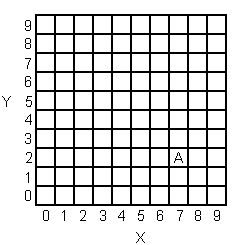 Board positions are denoted as x.y . The android shown is at 7,2. To move the android use the digits keys to specify directions as follows: