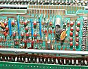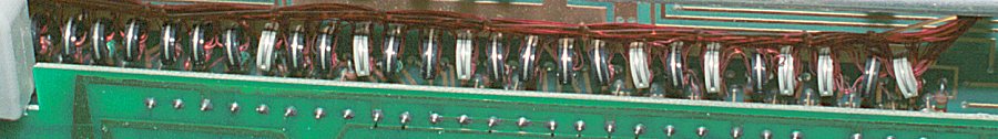 The CPU worked on a digit (nibble) serial basis. Each digit of a Binary Coded Decimal (BCD) number was fetched and operated on successively. The machine used a 1.21MHz clock. The hard-wired logic gates were created with diode-resistor logic. To keep the huge board (which also served as the motherboard) as simple as possible, all diodes were oriented the same way and all resistors had the same value. All interconnections were made on 6 internal layers making the board almost immune to solder bridges and other shorts. Plugged into this board was a board containing 40 flip flops, a board containing control logic, the core memory board, and the core sense amplifier board.