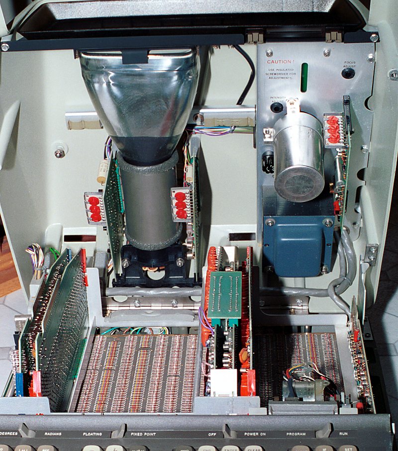 All of the HP 9100s read only data, including functions, constants and the character encoders and CRT modulating pattern fit into the 32k bits of circuit board ROM. The ROM was on a large board that occupied the bottom of the machine.